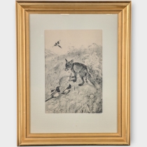 Blandteknik på papper, tillskriven Bruno Liljefors. Daterad 85, Bär signartur Bruno Liljefors Rammått 37x47 cm Bildmått 18x27 cm