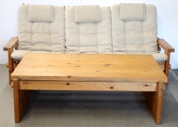 3-sits soffa med bord i furu, Brännmärkt Swedese, 1970-tal, Sofflängd 203 cm Bord 140x78 H 45 cm Fläckar och bruksslitage