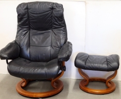 Fåtölj med fotpall, Ekornes, snurr och fällbar Sitthöjd 40 cm Höjd 100 cm Bredd 80 cm