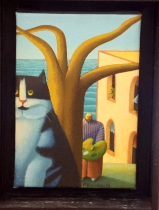 Olja på duk, signerad och daterad 1993 "Målardag" Bildmått 8.5x12.5 cm Rammått 10.5x15.5 cm
