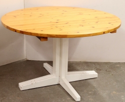 Matsalsbord, IKEA "Klacken" 1980, bemålad stomme Diameter 120 cm Höjd 73 cm Iläggsskivor 2x55 cm