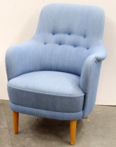 "Samsas" Blå textilklädsel, Brickmärkt, Bruksslitage Höjd 85 cm Bredd 70 cm Sitthöjd 39 cm