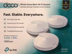 TP-link Deco M5 Mesh-system AC1300 Skapar ett enda sömlöst wifi-nätverk Kräver ingen kabeldragning Utbyggbart