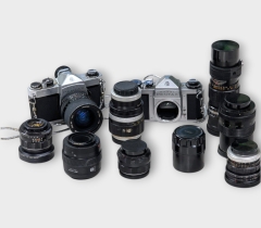 2 st kameror "Pentax asahi modell sp500" med 8 objektiv