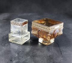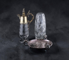 Glas & nysilver, skål nysilver med hänklar, vas i pressglas, Höjd 30-35 cm