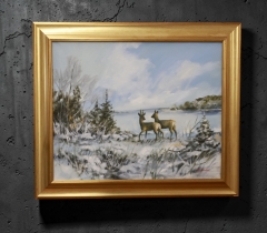 Olja på duk, Signerad, "Betande rådjur"