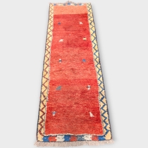 Handknuten matta, Marockansk Boujad, vintageröd med berbersymboler Storlek 202x70 cm