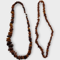 2 st halscollier bärnsten Längd 70 cm, vikt 183 g