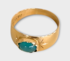 Guldring i 18 k guld med grön sten, Totalvikt 2,3 g