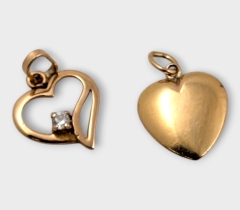 2 st guldhänge i 18 k, Hjärtan Totalvikt 1,7 g