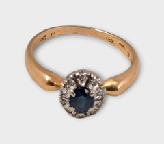 Guldring i 18 karat med briljanter 0,08 ct, safir Totalvikt 3 g
