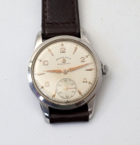 Herr, armbandsur, stål, 1950-tal, 35 mm Boettnr 1209051, 212127 Fläckig urtavla