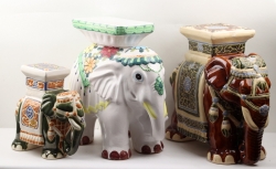 3 st, Elefanter, porslin Höjd 29.5-45 cm Spricka vänster bakben på den vita elefanten