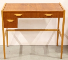 Sminkbord i teak, 3 lådor, 1960-tal Höjd 68 cm Bredd 80 cm Djup 40 cm Märken på ytan