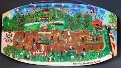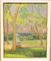 Oljemålning på träbricka, signerad, motiv stadsparken Bildmått 60x33 cm