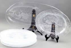 Pukeberg, Fiskmotiv 16 tallrikar (29.5x22x5 cm) 1 uppläggnings fat (54x26 cm)
