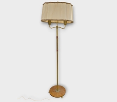 1900-talets mitt, mässing och trä, 2 ljuspunkter Höjd med skärm 155 cm