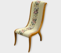 Svanhalsstol, broderad klädsel med blomotiv Rygghöjd 102 cm Sitthöjd 43 cm Bredd 46 cm