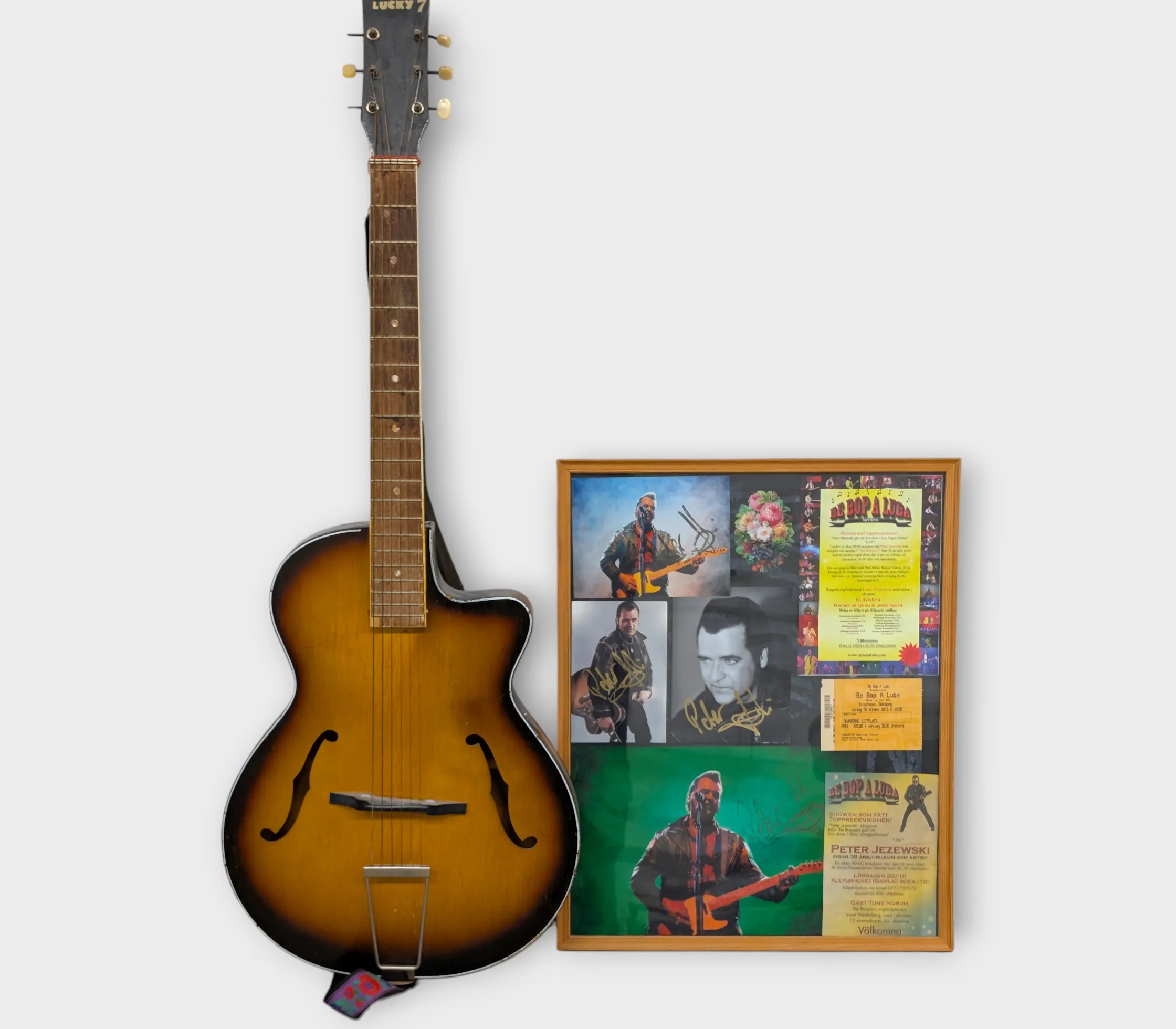 Gittar Lucky seven Holland, Peter Jezewski tavla med autografer