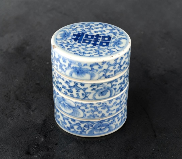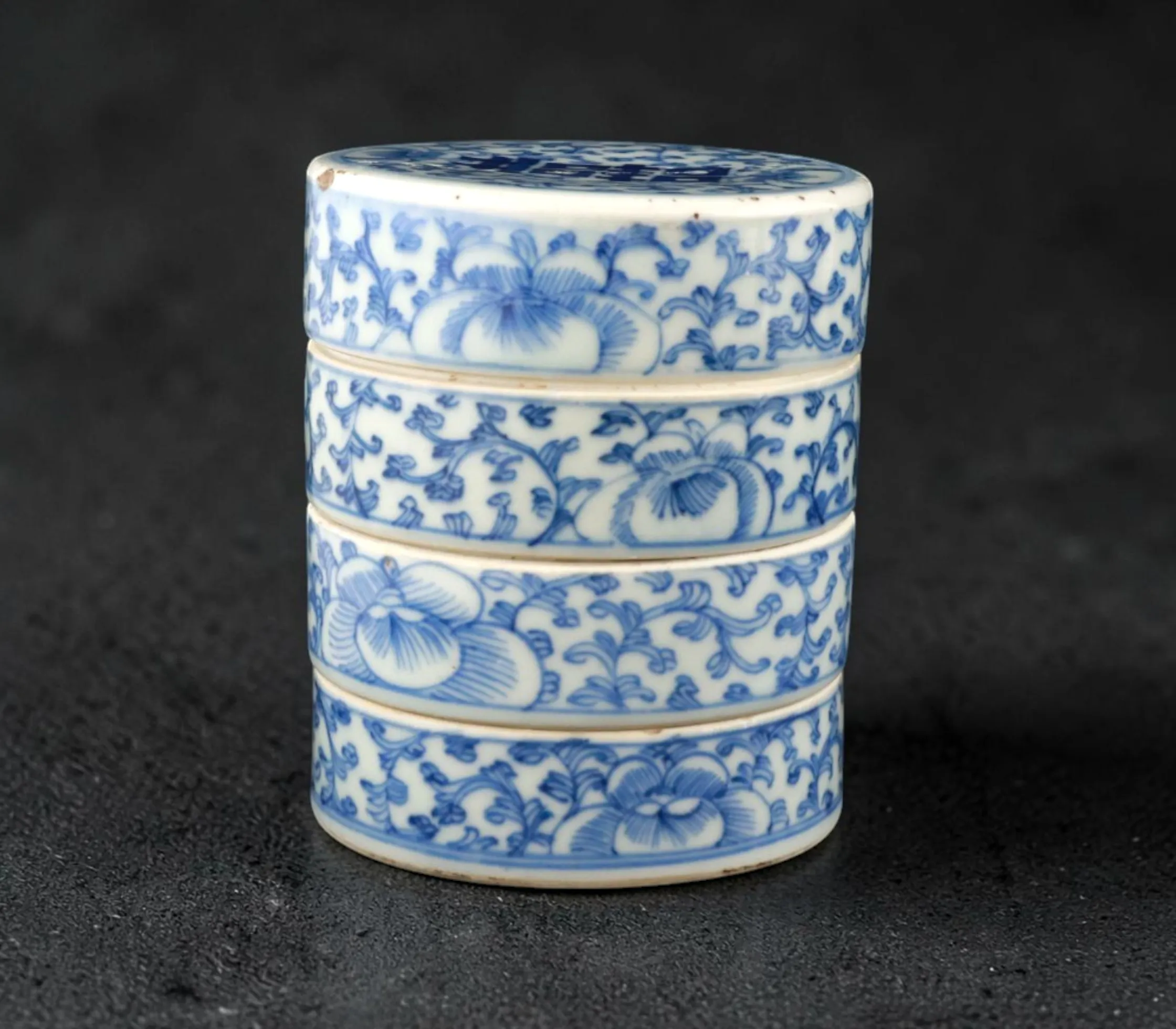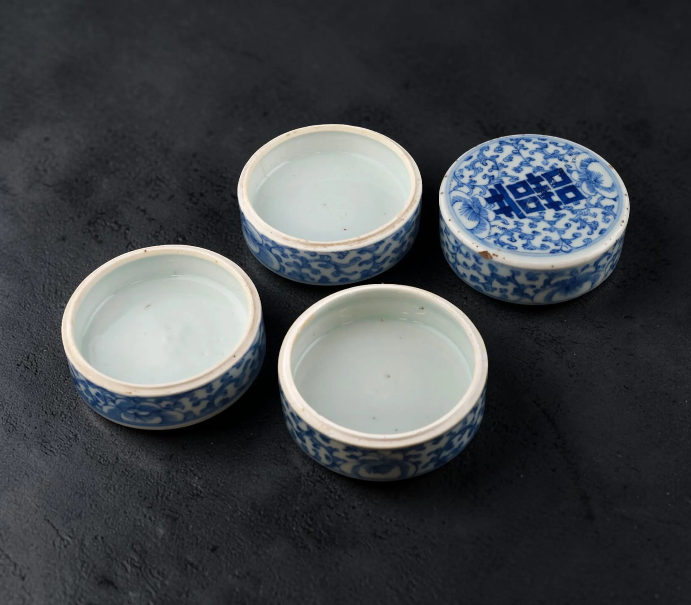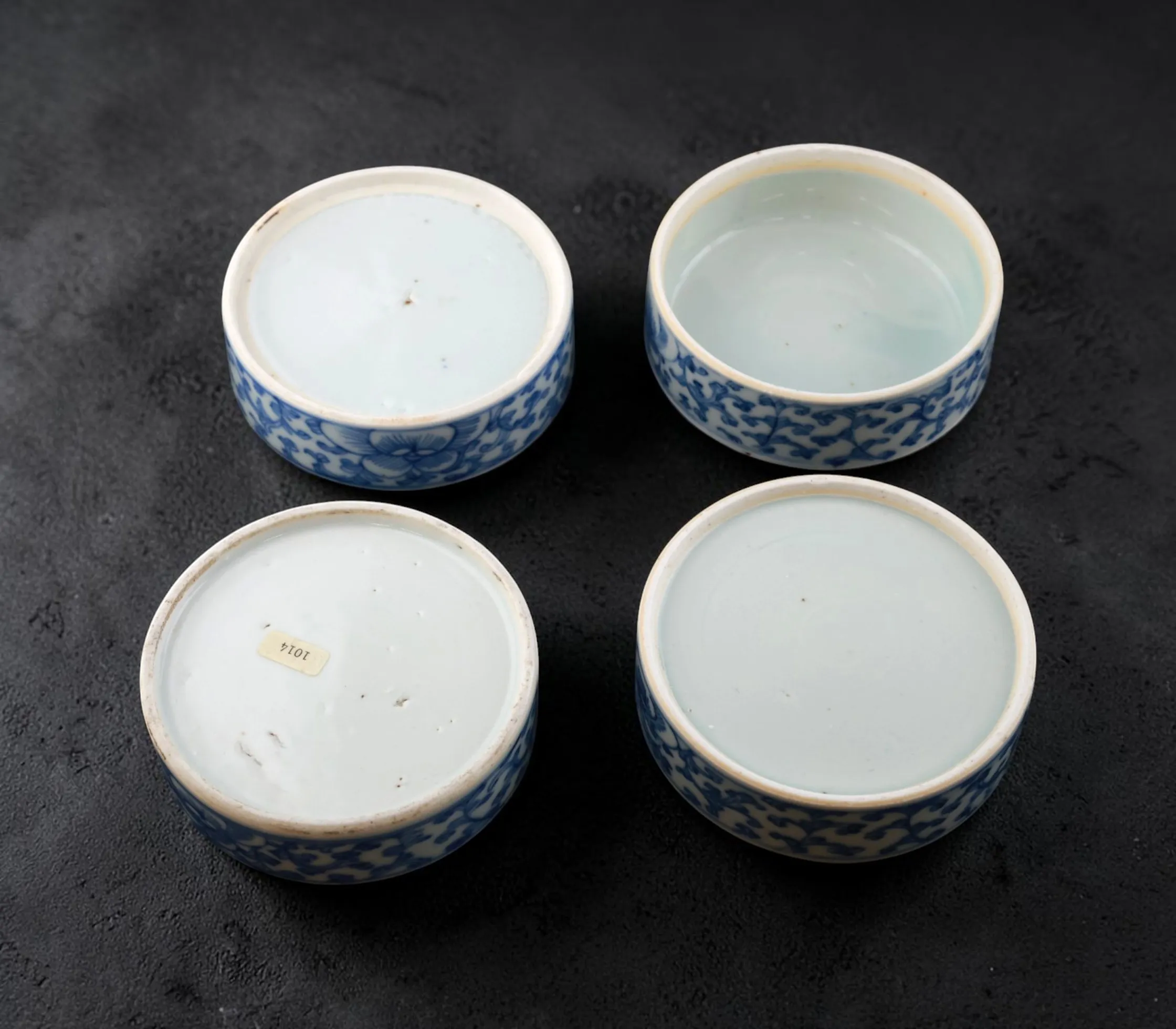 4 delar, Asien, 1800-tal, dekor i underglasyr blått, Slitage och nagg