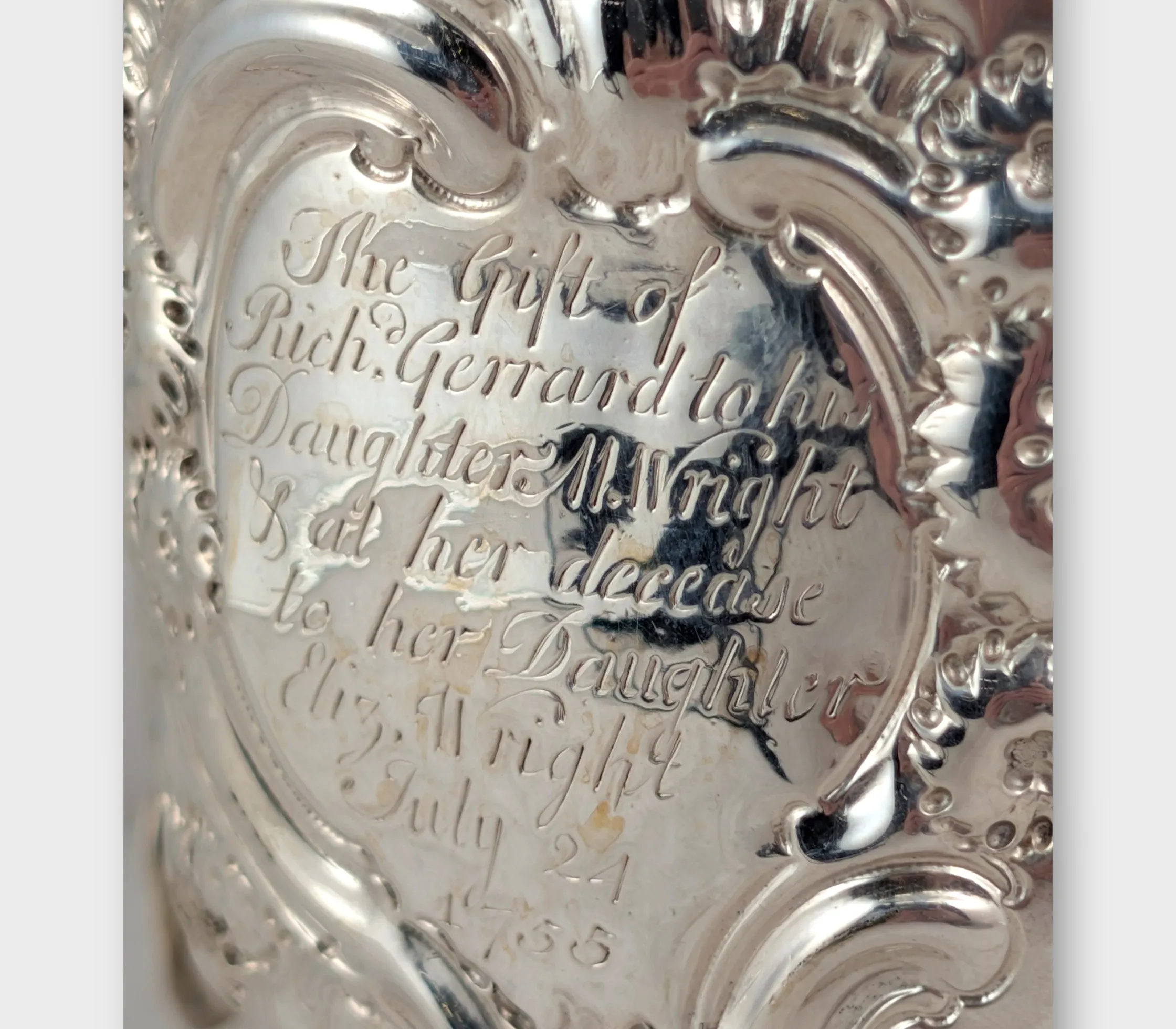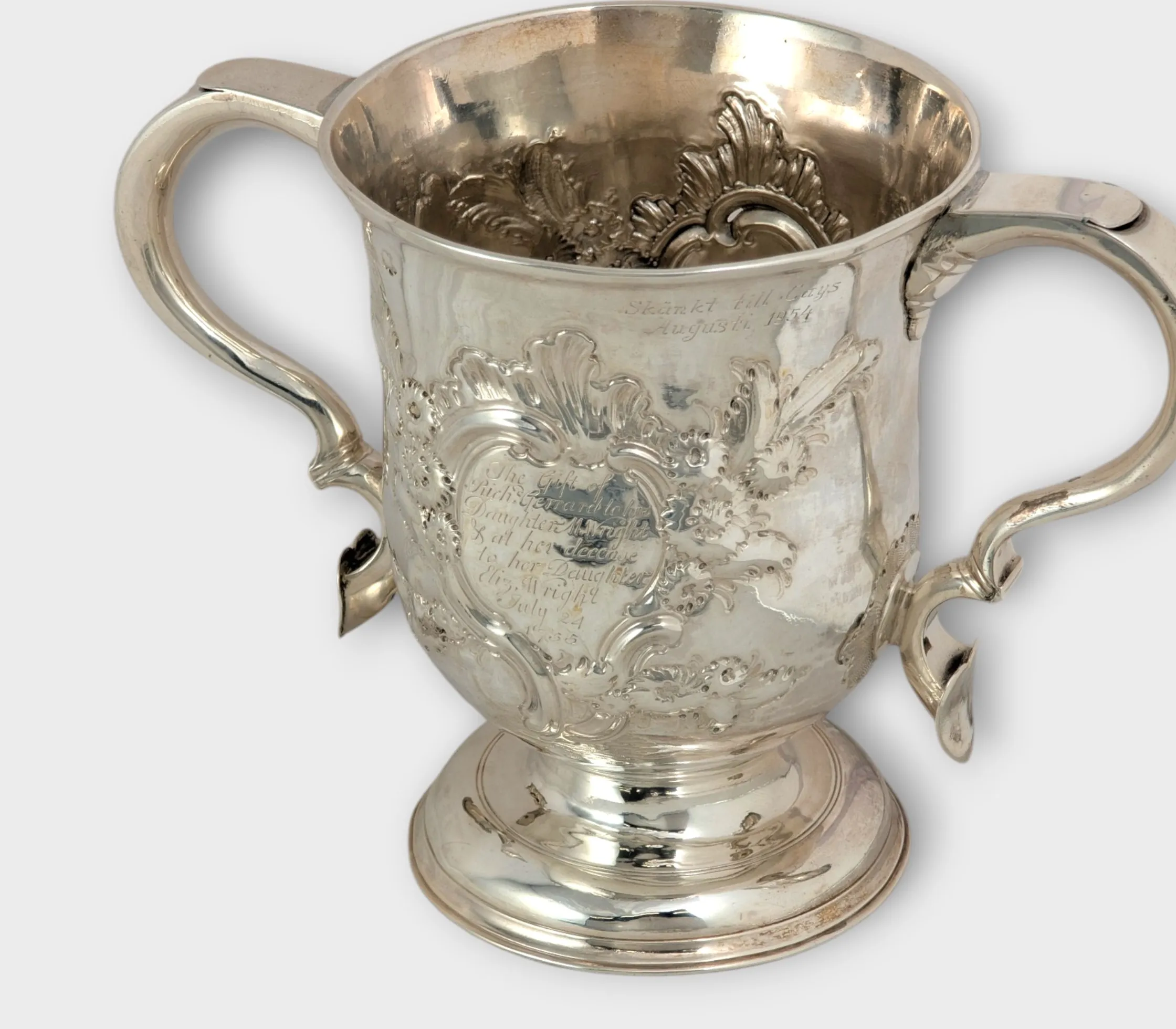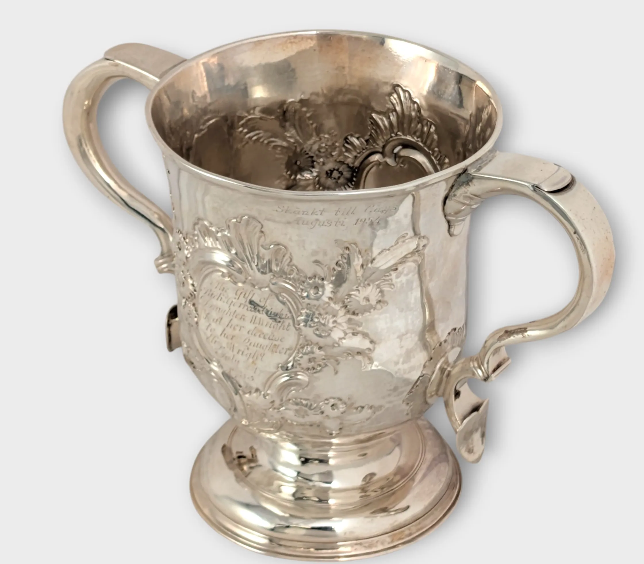 Bägare i silver, England, daterad 1755, graverad med olika ägare