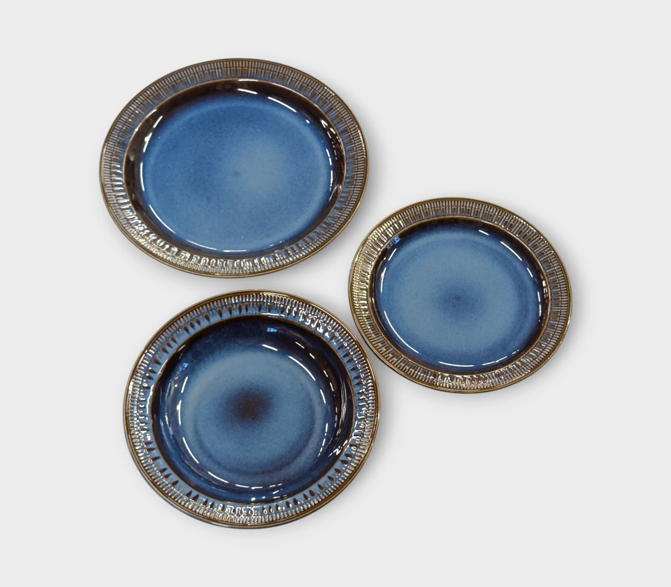 6 uppläggningsfat, sås, kastrull, 8 mattallrikar, 8 djupa tallrikar och 8 assietter