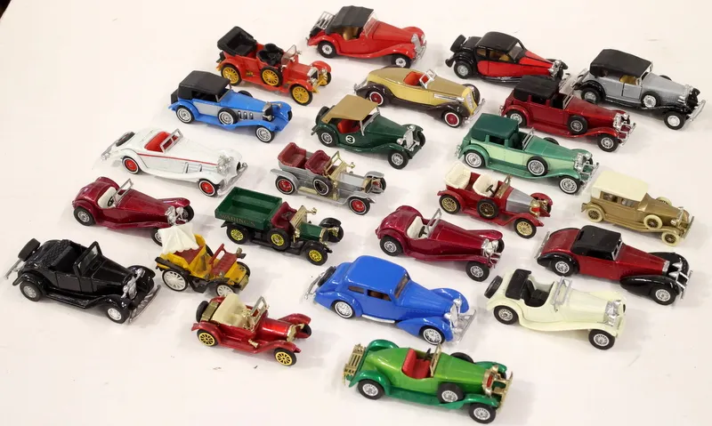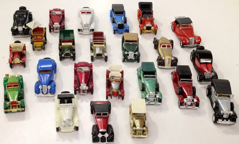 23 bilar, "Corgi, Matschbox mm.", nya, olekta från leksaksmuseum