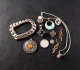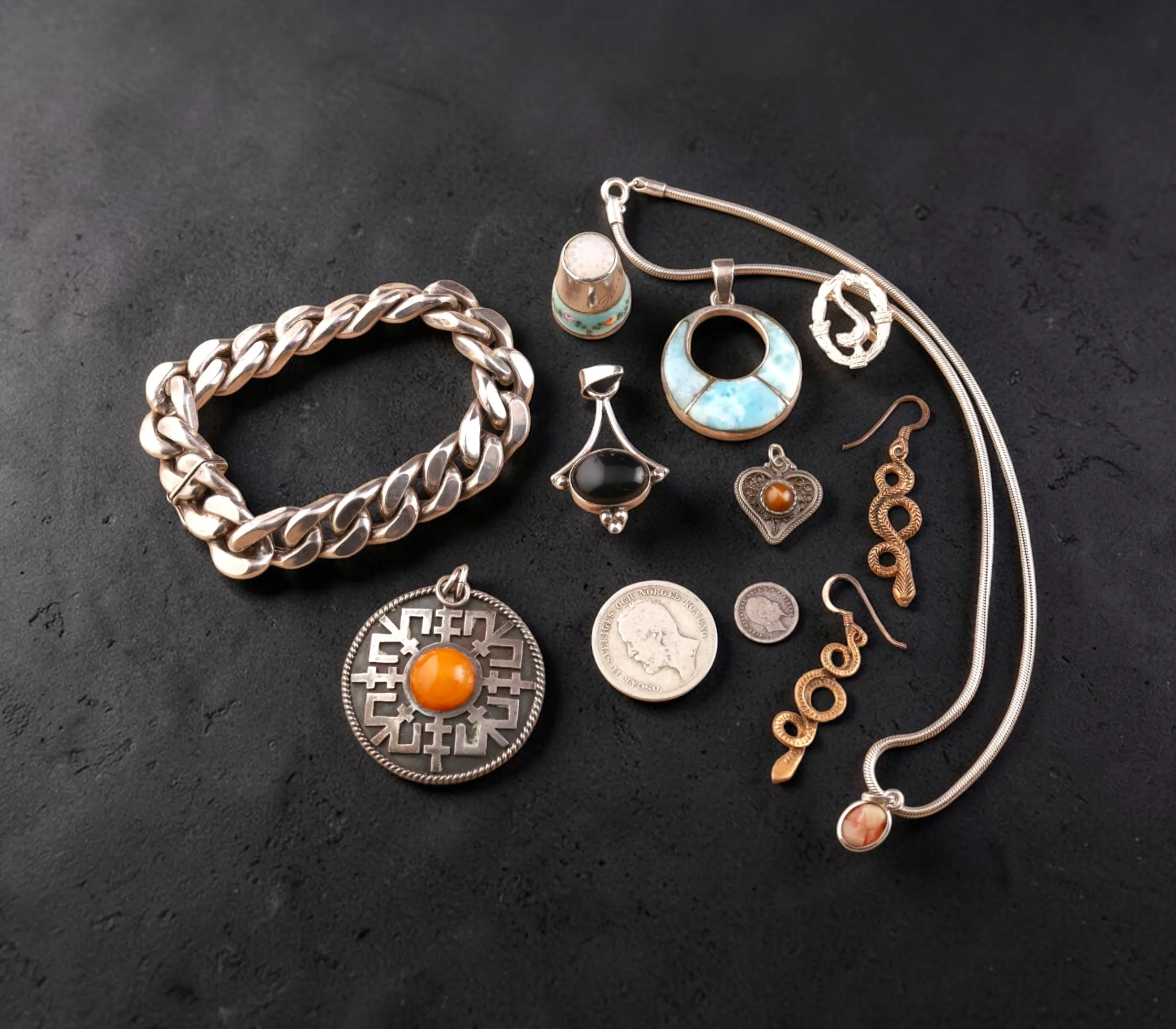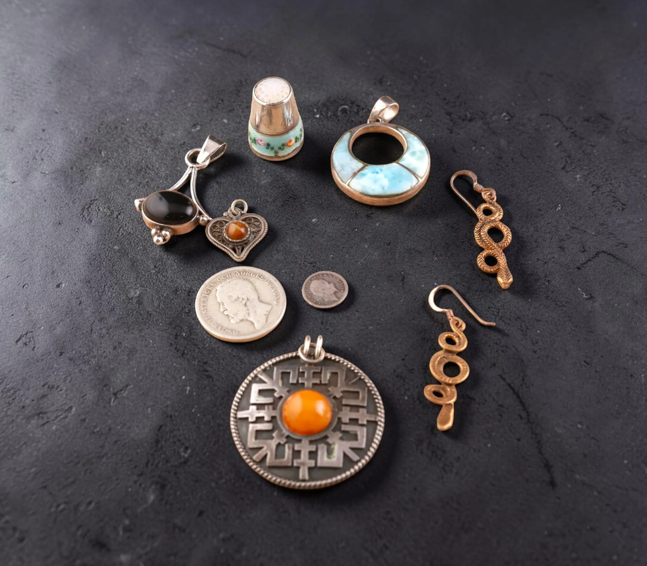 Antik fingerborg emalj, empir örhänge, förgyllt Camé, Silver