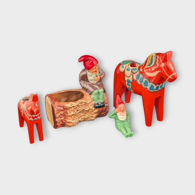 2 Dalahästar, Tomte på stubbe Tyskland och en sittande tomte