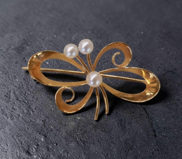 Brosch med 3 vita pärlor,