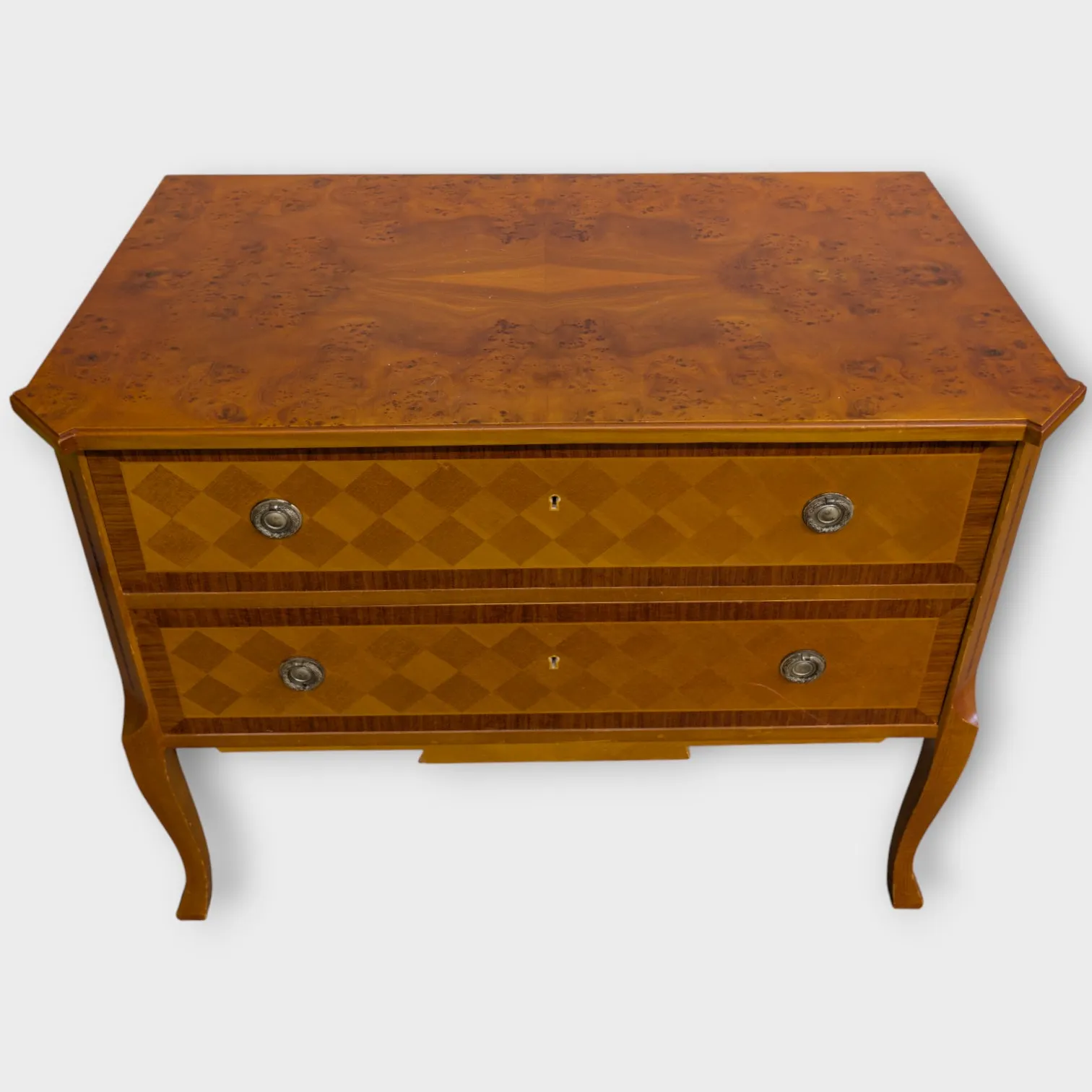 Gustaviansk-stil, fanerad i olika träslag, 2 lådor,
