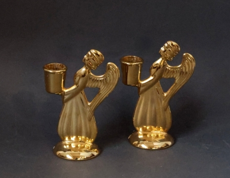 Ett par, ljusstake, skyddsängel,  mässing, Skultuna K11