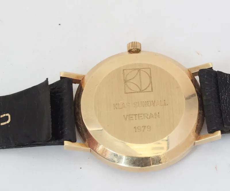 Quartz, 14 k, 33 mm med gravyr