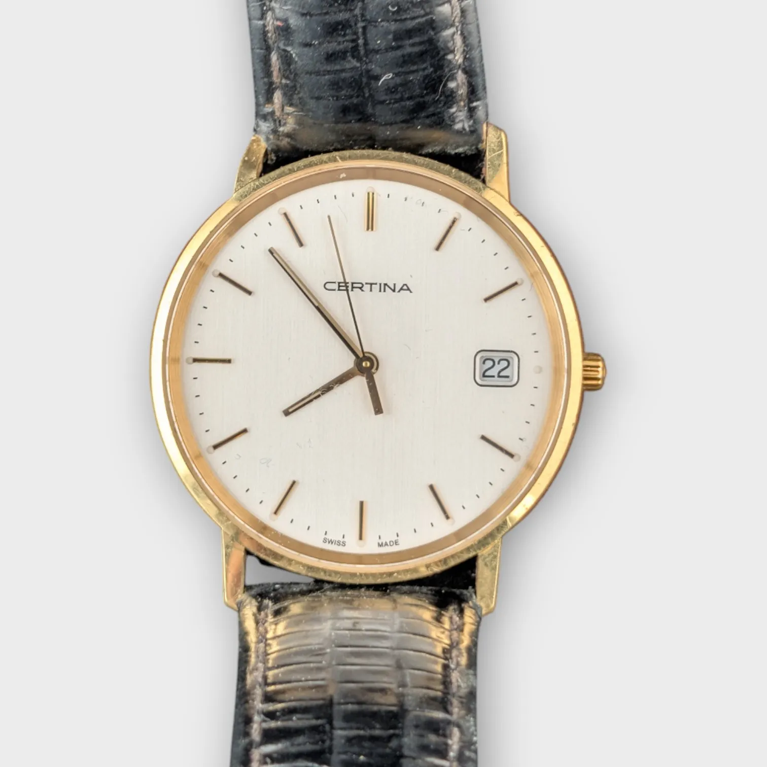 Guldklocka från Certina, 18 karat, kvartsur, graverad