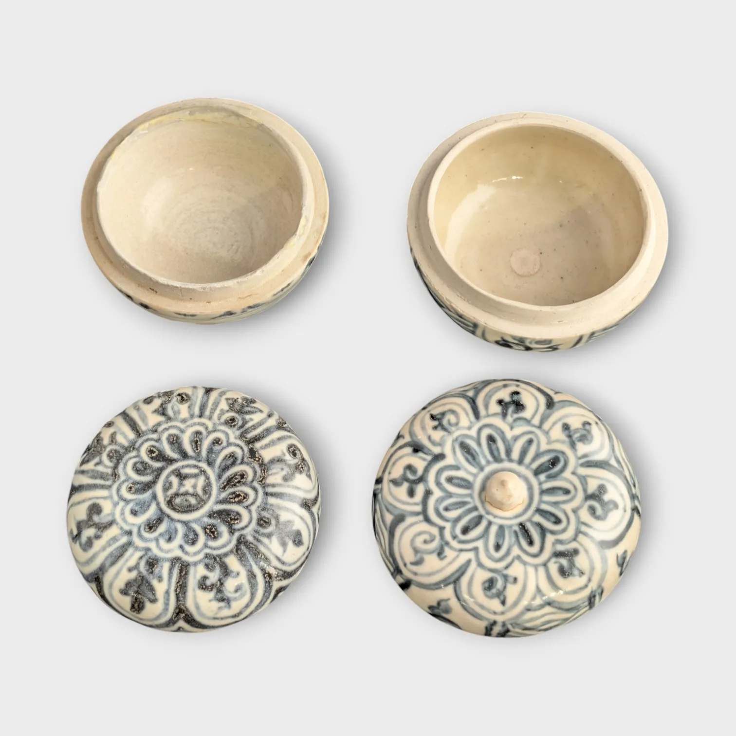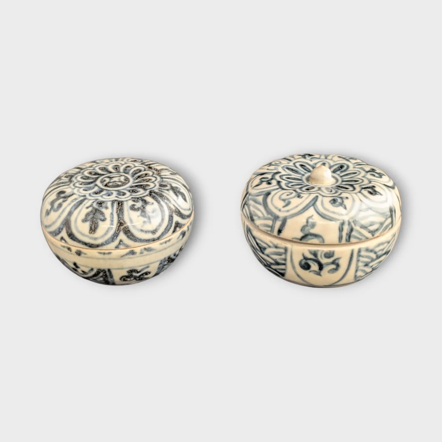 2 st dosor med lock, sydostasien, dekor i underglasyrblått