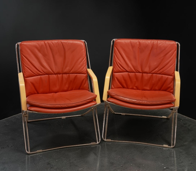 Ett par från Ire möbler, Stomme i kromat stål, skinnklädsel
