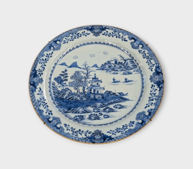 Qing Dynastin, Kina, dekor i underglasyblått av flodlandskap
