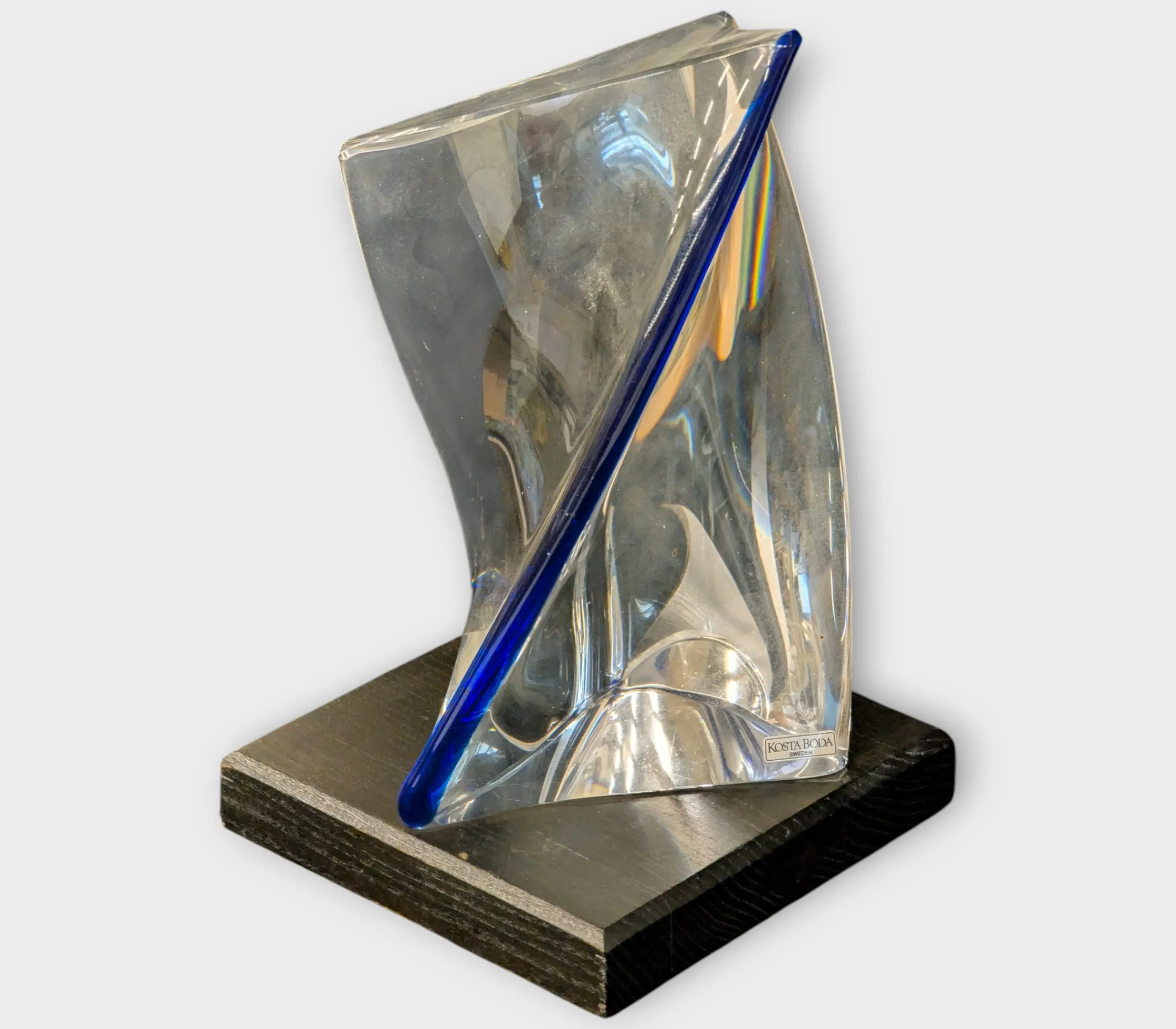 Skulptur, Kosta Boda, Glasblock i klarglas med blå rand