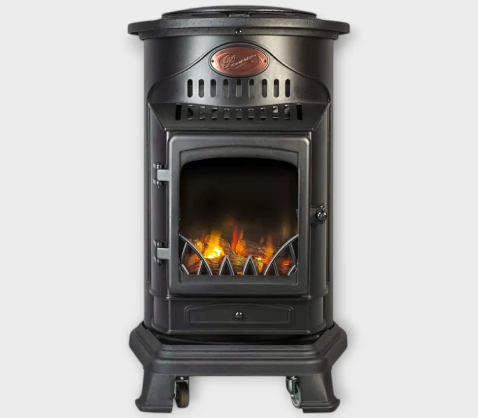 Gasolkamin Provence, Mattsvart – Termostat, Snabb uppvärmning.