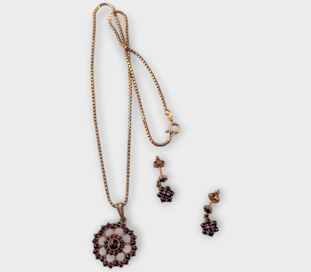 Halskedja med hänge Silver, Ett par örhängen Silver