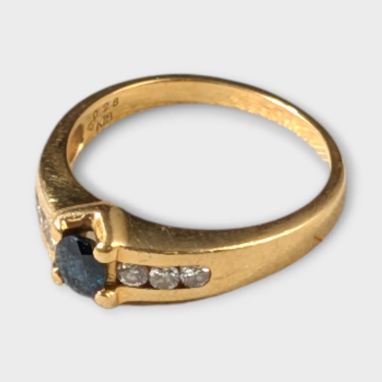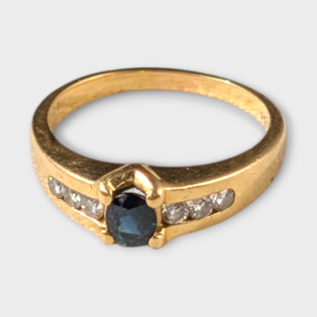 Guldring i 18 k med 6 diamanter 0,28 ct och Safir 0,56 ct