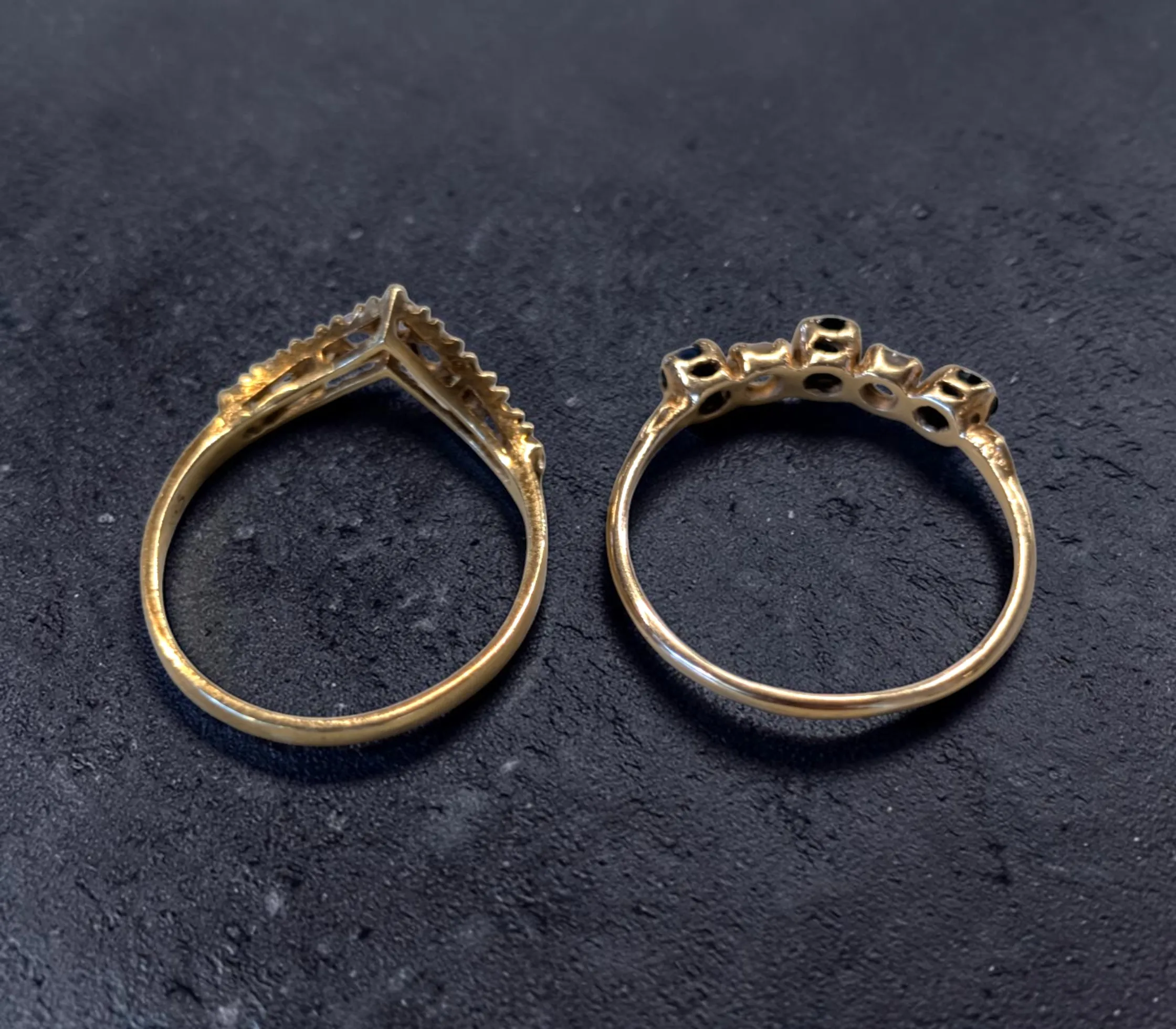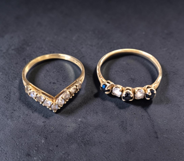 2 st ringar i 14 karats guld med stenar