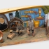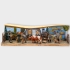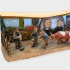 Träfigurer på träplatta med bakgrund, skuret trä, signerad