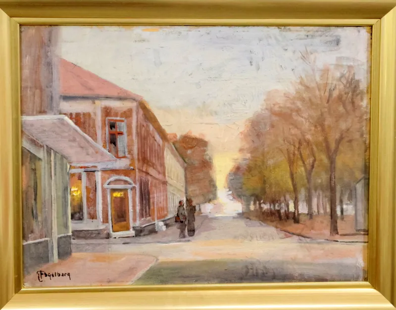 Olja på pannå, signerad, "Från Georg. Mabel Hem"