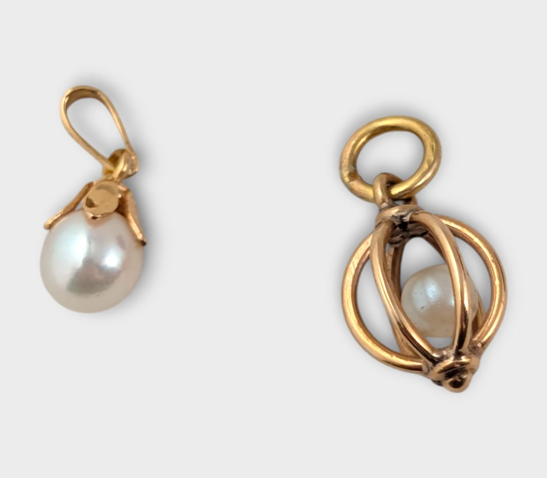 2 st hängsmycken 18 k med pärla,