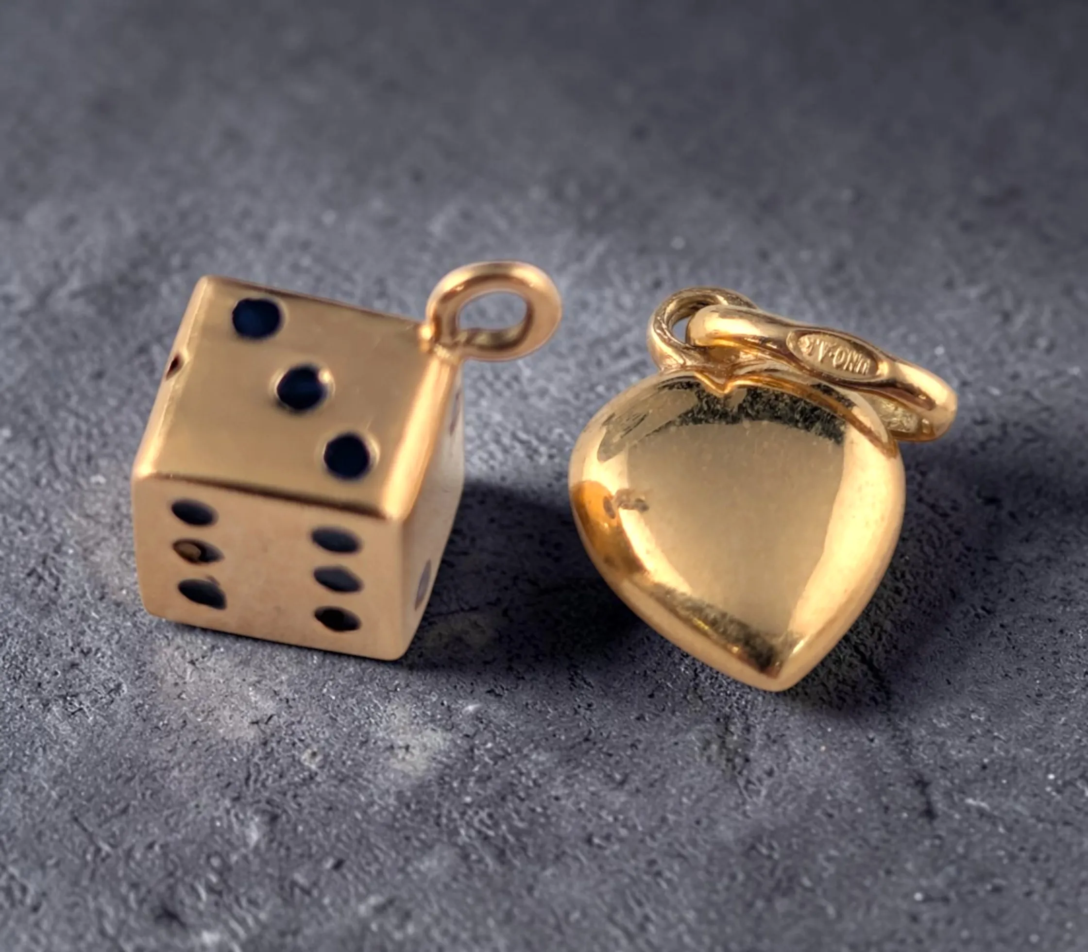 Hängsmycke i form av tärning och hjärta i 18 k guld
