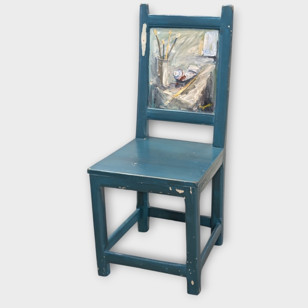Bemålad 1800-tals stol med oljemålning i ryggstödet av Håkan Stahre