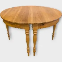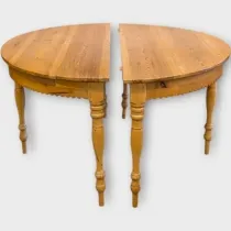 Halvmånebord i furu med svarvade ben, 1900-talets första hälft, Sprucken skiva