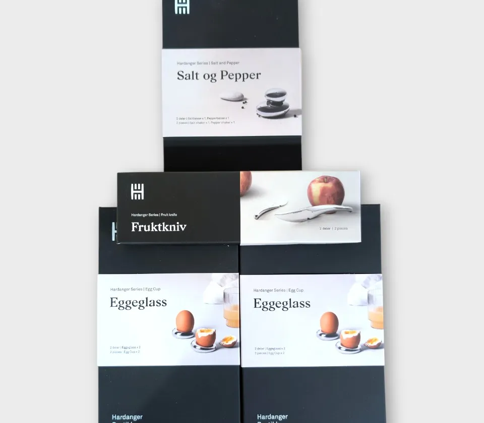 4 st äggkoppar, fruktkniv, salt och pepparkar