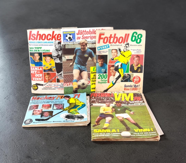 5 st tidningar med samlarbilder inom fotboll och hockey
